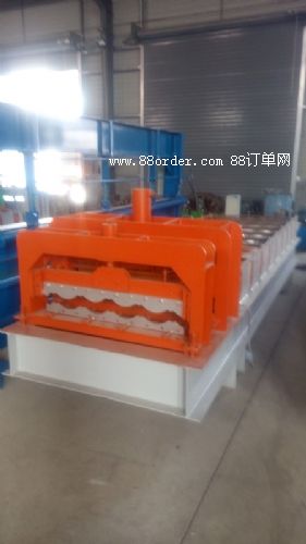 琉璃瓦壓瓦機分為三部分:輥道成型部分、壓型部分、切刀部分。輥道成型部分是由電機拖動,鏈條帶動各輥轉(zhuǎn)動。壓型部分是液壓缸帶動模具上下移動,可以把彩鋼壓成許多節(jié),形似琉璃瓦。切刀部分是液壓缸帶動刀具上下移動,可以把彩色鋼瓦切斷。