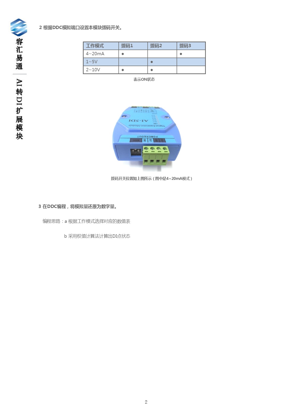 用途: 增加開關(guān)量輸入通道。將一個智能設(shè)備中的模擬量輸入通道轉(zhuǎn)為5個數(shù)字量輸入通道。