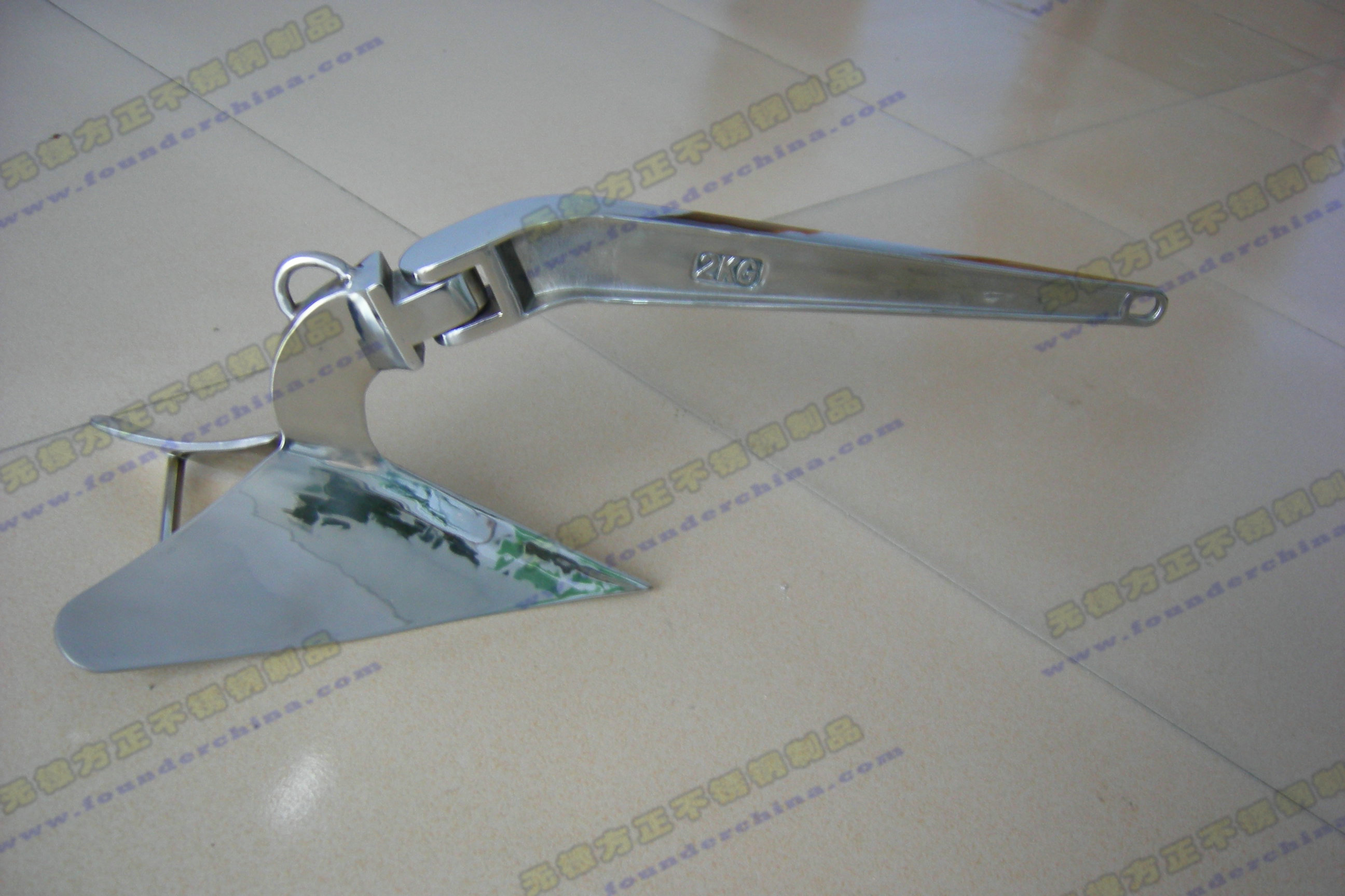 現(xiàn)代錨用鑄鋼或鍛鋼制造,主要有四種。①有桿錨:錨爪和錨干通常為一整體,并有一垂直于錨爪平面的橫桿。有桿錨多為雙爪,有的是單爪。使用時(shí)一爪嚙入土中較深,抓力大,但因有橫桿,收藏不便,多用于小型船舶。有桿錨主要類(lèi)型有海軍錨(圖1)、單爪錨(圖2)佛山錨、日式錨等。②無(wú)桿錨:錨爪和錨桿可相對(duì)轉(zhuǎn)動(dòng)一定角度,無(wú)橫桿。使用時(shí)兩個(gè)錨爪同時(shí)嚙入土中,起錨和收藏方便,使用最為廣泛。無(wú)桿錨中具有代表性的為霍爾錨(圖3)及其改良型斯貝克錨。③大抓力錨:錨爪寬大,可轉(zhuǎn)動(dòng)一定角度,錨頭或錨爪中部有突出的桿體,起穩(wěn)定作用。因錨爪嚙土面積大,抓力大,適用于砂質(zhì)或土質(zhì)松軟的水底。大抓力錨主要類(lèi)型有丹福斯錨、馬氏大爪力錨、快艇錨等。④特種錨:形狀與一般錨不同,如菌形錨,錨頭呈菌狀或傘狀,嚙入土中較深,抓力大,不易移動(dòng),多用作長(zhǎng)期錨泊、定位用,如作燈船、浮筒、躉船等的固定錨。