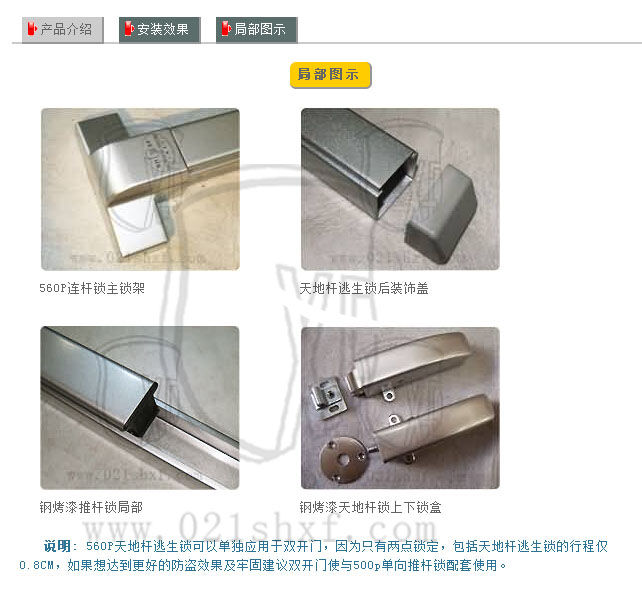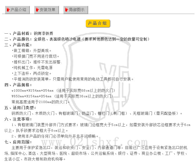 3、門內(nèi):推杠式逃生鎖體;門外:帶鑰匙保險鎖頭