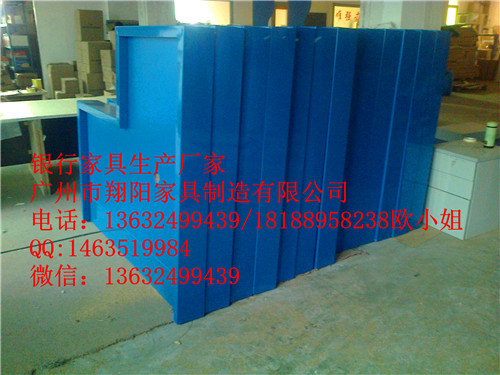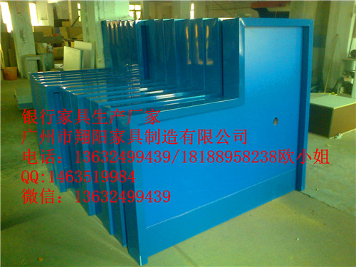 材質(zhì):寶石藍(lán)鋼制框架,建行藍(lán)色防火板飾面,配兩個(gè)透明亞克力票據(jù)盒。