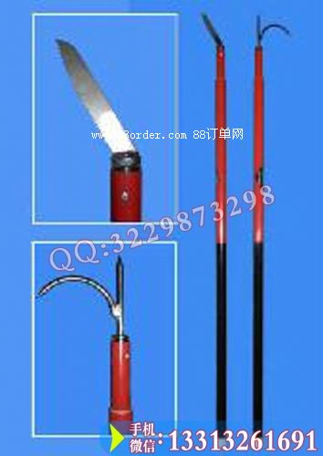異物桿是用來清除掛在供電線路上的異物(如樹枝 塑料袋 風(fēng)箏等)的專用工具,其功能可以挑、鉤、鋸、打。該工具用環(huán)氧樹脂玻璃纖維管材料為桿身,絕緣性能好。重量輕,可以伸縮,攜帶方便,桿頭部刀據(jù)和鉤尖用不銹鋼材料制作,不但防銹,而且鋒利。更換方便。伸縮機構(gòu)是定位銷鎖緊,伸長時拉出,當(dāng)拉到看見刻線時停住,而后左右轉(zhuǎn)動,轉(zhuǎn)到一定角度,定位銷會自動彈出,從而定位鎖緊,當(dāng)收縮時用手指按下定位銷同時往里推內(nèi)管即可縮短。