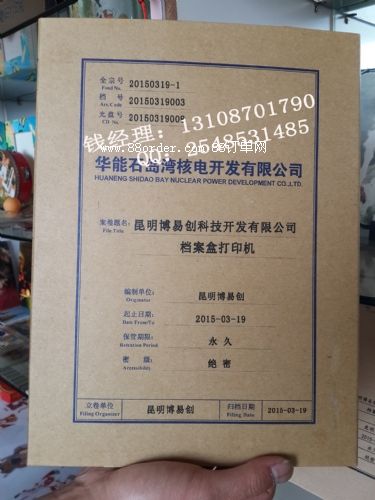 8、使用專業(yè)的檔案盒墨水,打印好后,檔案盒保存時(shí)間長(zhǎng),墨水在70年內(nèi)不褪色,耐候性良好;
