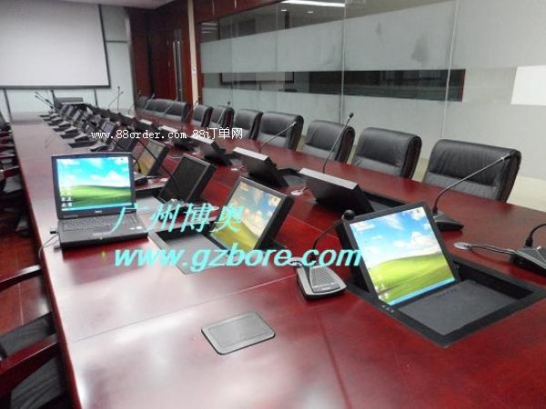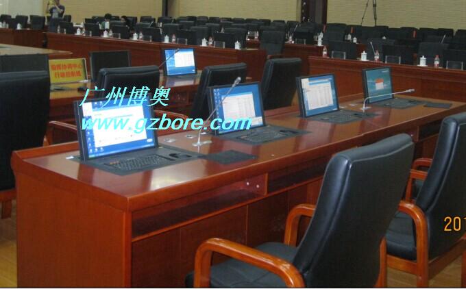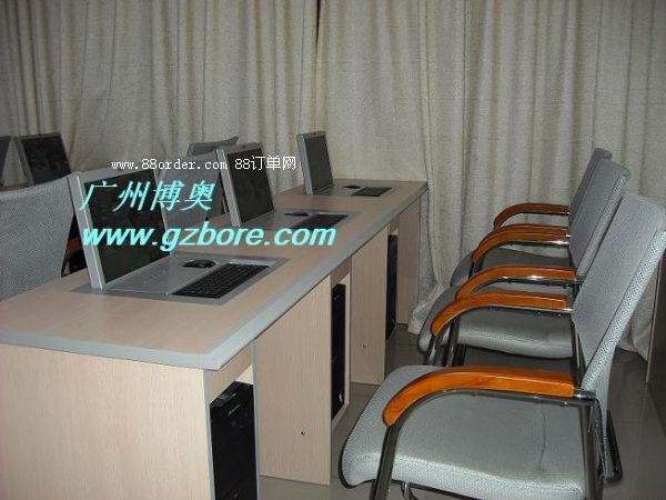 結(jié) 構(gòu):每張桌子配置2臺(tái)電動(dòng)遙控液晶翻轉(zhuǎn)機(jī)(當(dāng)時(shí)電腦時(shí)液晶顯示器自動(dòng)翻轉(zhuǎn)成135度角,同時(shí)鍵盤(pán)升起和桌面相平,當(dāng)不使用顯示器時(shí),自動(dòng)合上,整個(gè)桌面美觀(guān)整潔,電腦桌前面設(shè)有檢修門(mén),方便線(xiàn)路維修。