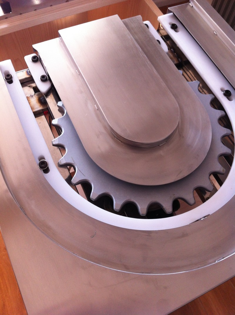 獨(dú)特新穎的回轉(zhuǎn)火鍋設(shè)備工藝,配用現(xiàn)代高科技電磁爐具,沒有明火,不存在安全隱患,沒有絲毫油煙產(chǎn)生,環(huán)保、衛(wèi)生是其優(yōu)點(diǎn)之四。回轉(zhuǎn)火鍋設(shè)備均由以下部分構(gòu)成:臺(tái)架系統(tǒng)、動(dòng)力系統(tǒng)、輸送鏈系統(tǒng) 、軌道系統(tǒng)。 我司的回轉(zhuǎn)輸送設(shè)備采用進(jìn)口電器元件、鏈片及導(dǎo)軌均采用304不銹鋼材質(zhì),配合不銹鋼鏡面板或不銹鋼拉絲面板,外觀整潔、美觀。