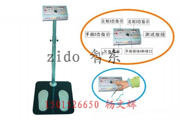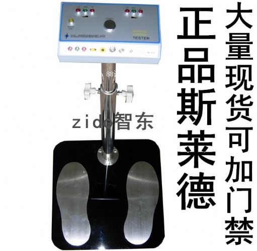 2、esd測(cè)試時(shí),只要雙腳分別踏在相對(duì)的金屬踏板上,戴好手腕帶挾入或插入手腕接線品上,手指輕輕按在金屬測(cè)試按鈕就一目了然地知道esd裝備是否合格。注:請(qǐng)勿戴手套或用指甲按在金屬測(cè)試按鈕。正確使用。