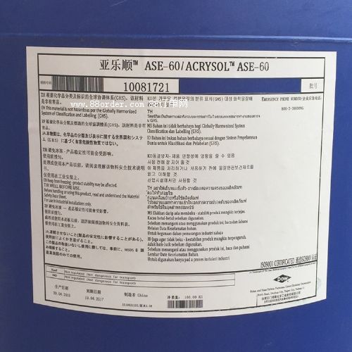 ¨acrysol? ase-60可單獨(dú)使用,亦可與其它增稠劑配合使用