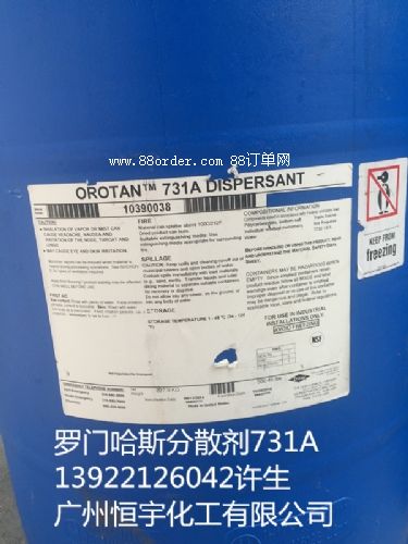 羅門哈斯orotan? 分散劑731a orotan?731a是通用型聚羧酸鈉鹽分散劑。疏水改性結(jié)構(gòu)使orotan?731a具有同類鈉鹽分散劑不可比擬的耐水性,可程度地展示體系的光澤,廣泛應(yīng)用于由純丙、苯丙和醋丙乳液配制的高光、有光至啞光涂料中,具有對(duì)各類顏填料極高的分散效率,充分發(fā)揮顏填料的遮蓋潛力。 orotan?731a與高性能的乳液和助劑配合使用時(shí),可賦予涂料更好的耐腐蝕性能。