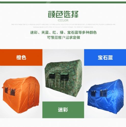 相較于普通金屬支架帳篷來說,充氣帳篷具有其無法比擬的優(yōu)勢,其重量輕、體積小,在運輸中具有普通金屬支架帳篷所沒有的優(yōu)勢。并且其架設與拆除都非常簡單,不會浪費更多的人力與時間,尤其適合在緊急事件的快速反應時使用。在環(huán)境惡劣無法運達的時候,充氣帳篷還可以進行空投