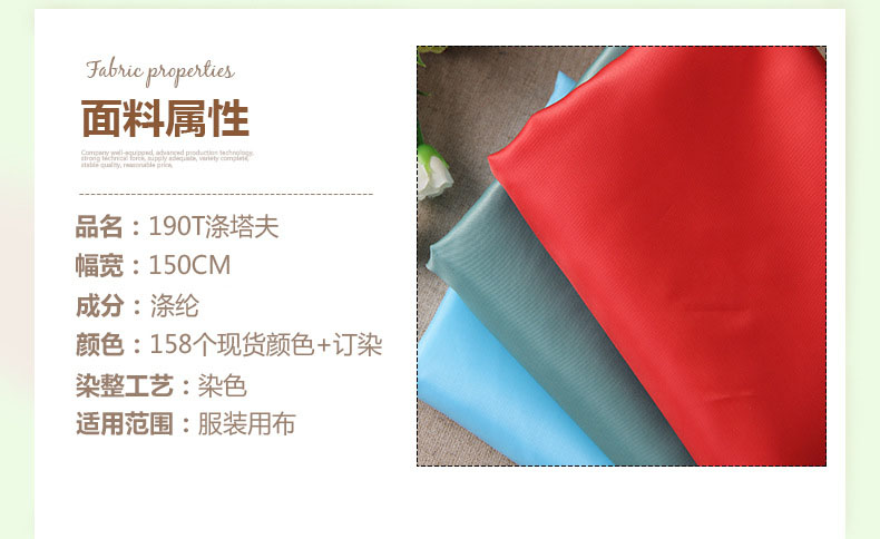 直銷190T 化纖滌綸里布 78g綢子布優(yōu)質(zhì)服飾面料 滌塔夫