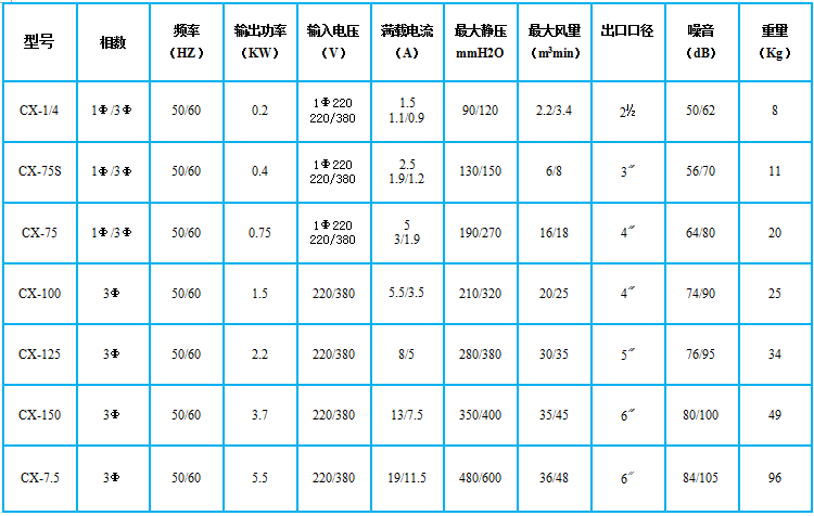 型號:cx透浦式鼓風(fēng)機(jī)系列(cx-125)
