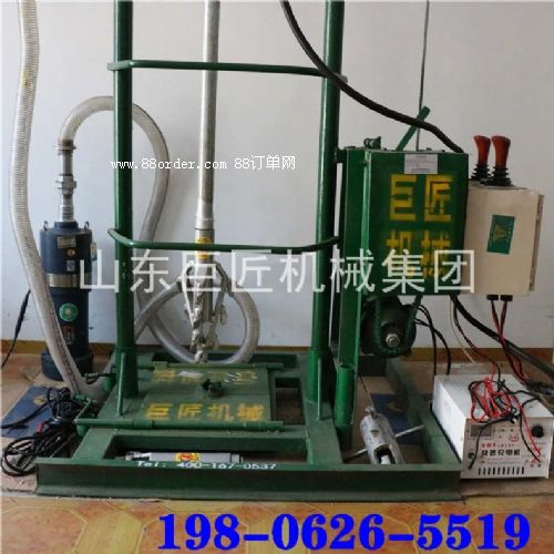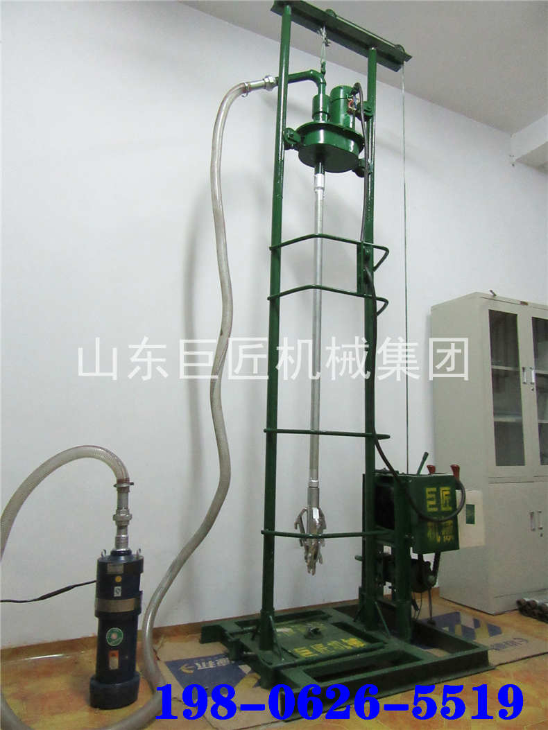 開孔300mm,鉆深30m。水泵壓力適應(yīng)鉆井深度120m輸入電壓220v鉆井最大開孔直徑250~300mm配置總功率4.55kw驅(qū)動電機功率1.25kw提升電機功率1.1kw最大提升重量750kg潛水泵電機功率2.2kw(揚程46m,流量12m3/h)驅(qū)動鉆桿旋轉(zhuǎn)速度150r/min(空載)工作臺占地面積1㎡井架最大高度3.5m分解后單件最大重量小于40kg分解后單件最大長度2m發(fā)貨箱體積11100*450*450mm發(fā)貨箱體積2670*670*450mm整機重量(不含鉆桿)200kg鉆桿規(guī)格直徑42mm:2米/根,5.5公斤/根操作人員數(shù)2人山東巨匠機械集團有限公司專業(yè)供應(yīng)人力打井機、兩相電打井機、三相電打井機、汽油打井機、柴油打井機、液壓水井鉆機、氣動打井機,歡迎來電洽談業(yè)務(wù)!