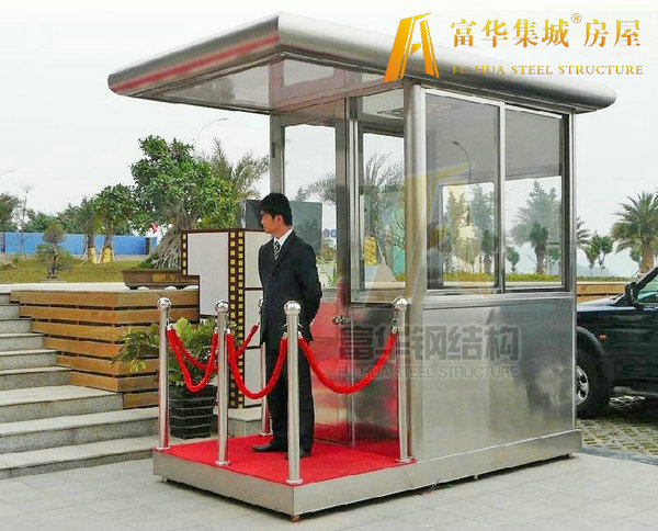 富華集城品牌歐式崗?fù)げ馁|(zhì)表面經(jīng)特殊工藝加工處理,精工制作而成,款型別致,品種繁多,不僅美觀大方、穩(wěn)固耐用,而且適用于物業(yè)、治安、交通監(jiān)控等多方面領(lǐng)域。富華集城品牌崗?fù)ぶ黝}骨架采用優(yōu)質(zhì)不銹鋼整體焊接而成,強(qiáng)度高、抗風(fēng)壓。 然后,崗?fù)ろ敳坎捎锰厥夥浪q接工藝,杜絕了漏水之患。崗?fù)?nèi)預(yù)留有空調(diào)機(jī)其他電器電源插座,方便保安人員使用。