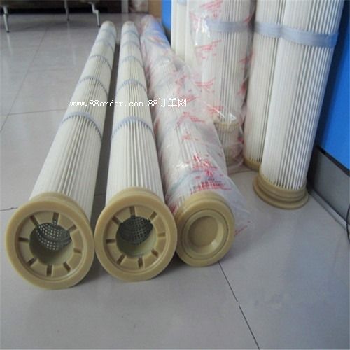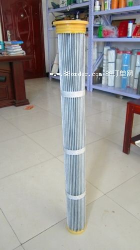 濾筒的品種較多,有細而長與粗而短之分。細長濾筒(如φ≤160,l=1~2m),其褶(如45褶)間空隙大、夾角大,褶少而淺,過濾面積比同徑同長的濾袋大2~5倍,清灰易而效果好;適用于濃度≥15g/m粉塵的過濾除塵,過濾風(fēng)速0.6~1.2m/min。粗短濾筒(如φ350,l=0.66m)直徑大、長度短、褶多(120~350褶)而深、褶間空隙小,過濾面積大,較之同徑同長濾袋面積大14~35倍,適于場地面積小、空間小的地方布置;但因褶角小,粉塵易積聚,難于清灰,適于濃度≤5g/m粉塵的過濾除塵,過濾風(fēng)速不宜>0.6m/min。