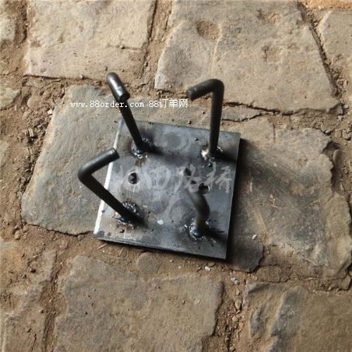 根據(jù)圖紙進(jìn)行加工→測量定位→支設(shè)支架→安放螺栓、預(yù)埋件及臨時固定→復(fù)測及固定測量定位首先由技術(shù)員熟悉圖紙,進(jìn)行測量技術(shù)交底,然后專職測量工根據(jù)技術(shù)測量要求從測量控制網(wǎng)上引出控制埋件和螺栓的控制線和標(biāo)高控制線。再根據(jù)設(shè)計預(yù)埋地腳螺栓及預(yù)埋件的中心、標(biāo)高定出具體位置。固定支架在固定支架立樁上投上相對標(biāo)高點(diǎn),底部應(yīng)焊接可靠,與模板固定架,鋼筋固定架等完全分開,并且保證固定架應(yīng)有足夠的剛度和穩(wěn)定性。安放螺栓固定架支設(shè)好后,螺栓安裝時應(yīng)先根據(jù)定位線固定好中心,然后調(diào)整標(biāo)高,并按方案要求進(jìn)行臨時加固。復(fù)測固定螺栓及預(yù)埋件安放后由測量工再次對螺栓及預(yù)埋件進(jìn)行調(diào)整、校核,經(jīng)檢查達(dá)到規(guī)范要求后,再把螺栓下部與固定架焊牢固定。同時對螺栓固定架縱橫兩個方向加焊剪刀撐予以加強(qiáng)。