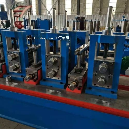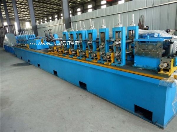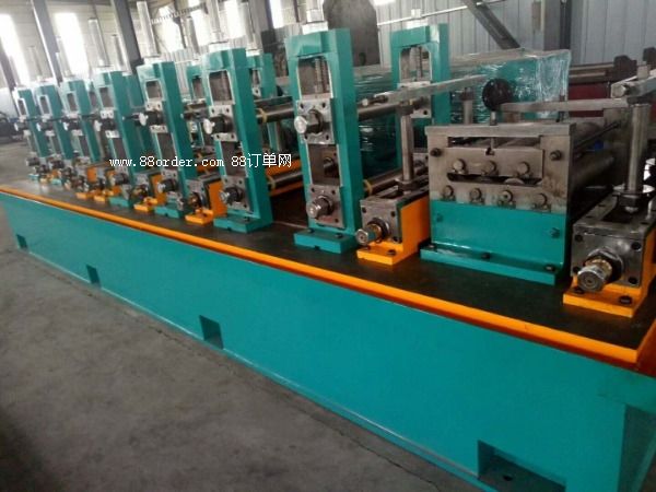 32高精度高頻焊管設備簡介加工范圍加工材質普通碳素鋼管子厚度1-2mm管子尺寸16-32mm開卷機液壓站 內徑φ450-φ550mm外徑φ1200-φ1700mm帶鋼寬度50-100mm承重最大1700kg剪切對焊寬度50-100mm厚度1-2mm籠式儲料倉帶鋼寬度50-100mm喂料速度 電機5.5kw成型定徑機水平軸徑材質φ55mm,材質:40cr。軸承型號22208立輥軸徑材質φ30mm,材質40cr。軸承型號6206導向軸徑材質φ30mm,材質:40cr擠壓軸徑材質φ30mm,材質:40cr刮刀2把冷卻1個土耳其頭4輥式壹架電機90kw電腦飛鋸管厚度1-2mm切斷長度4-12鋸切電機15kw運行電機15kw速度20次/分下料輥道傳動輪皮帶傳動長度12米固態(tài)高頻150kw