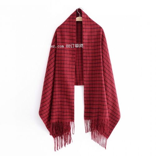 韓版小格子仿羊絨流蘇圍巾披肩保暖圍脖
