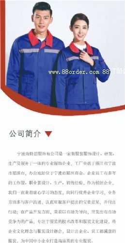 寧波尚特思服飾有公司是⼀家集服裝服飾設(shè)計、研發(fā)、⽣產(chǎn)及服務(wù)于⼀體的專業(yè)服飾企業(yè),⼯⼚坐落于浙江省寧波市慈溪市,辦公地址位于寧波市鄞州商會。企業(yè)員⼯有多年的⼯作服、職業(yè)裝設(shè)計、⽣產(chǎn)、銷售經(jīng)驗(yàn),作為初創(chuàng)企業(yè),我們⼀直秉著虛⼼學(xué)習(xí)的態(tài)度,向同⾏優(yōu)秀企業(yè)學(xué)習(xí),業(yè)務(wù)⽅⾯多與客戶溝通,認(rèn)真聽取客戶提出的寶貴意見,并付出⾏動;在產(chǎn)品開發(fā)⽅⾯,秉著以市場為導(dǎo)向,開發(fā)出有市場競爭⼒的產(chǎn)品,專注于服裝的技術(shù)改⾰和服裝⽂化建設(shè),將企業(yè)⽂化理念與服裝設(shè)計融合,設(shè)計讓企業(yè)、員⼯都滿意的服裝,為中國中⼩企業(yè)打造⾼品質(zhì)的專業(yè)服裝。