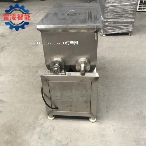 拌餡機(jī)(食品加工機(jī)械廠家tel:186*1508-5507)主要用于攪拌餡狀物料,也可用于其它散狀物料粉狀,醬狀物品的攪拌和混合。拌餡機(jī)是用與混料的理想設(shè)備,效率高,便于操作,是制作風(fēng)干腸類產(chǎn)品、料狀泥狀混合腸類產(chǎn)品、丸類產(chǎn)品的理想設(shè)備,同時(shí)也是生產(chǎn)水餃、餛飩類面食產(chǎn)品的可選設(shè)備。