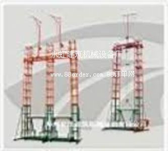 4、龍門架(模具吊架)采用手搖卷揚機自升平臺,用扒桿安裝標(biāo)準(zhǔn)節(jié),勞動強度低。