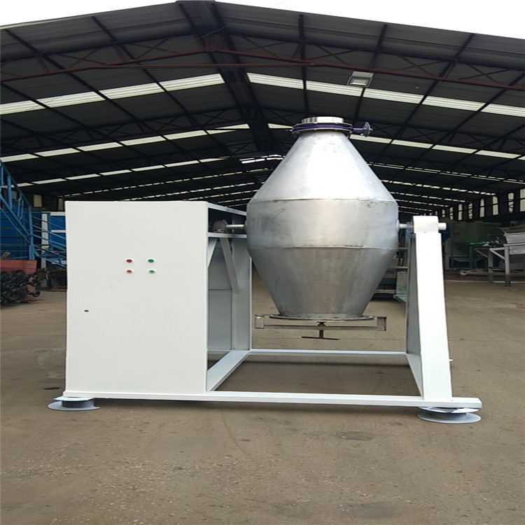 9hw系列轉(zhuǎn)鼓式混合機(jī) w型雙錐混合機(jī) 不銹鋼鼓式混料機(jī) 腰鼓式混料機(jī) 搖擺式混合機(jī) 藥才不銹鋼混合機(jī)w型雙錐混合機(jī)由雙錐筒、機(jī)械密封、機(jī)架、減速傳動、攪拌葉片等構(gòu)成。該機(jī)的工作過程是:把需混合的幾種物料通過真空輸送或人工加料投放到雙錐體內(nèi),上好筒蓋,開起設(shè)備,雙錐筒及攪拌葉片同時轉(zhuǎn)動,旋轉(zhuǎn)的雙錐筒使筒體內(nèi)物料產(chǎn)生紊亂翻滾混合,高速旋轉(zhuǎn)的攪拌葉片打碎結(jié)團(tuán)物料,使物料在筒體內(nèi)快速混合。w型雙錐混料機(jī)工作過程無死角,無沉積,可使混合的物料快速達(dá)到均勻一致的效果。