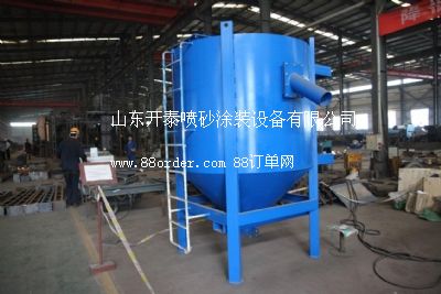 設(shè)備由連續(xù)自動(dòng)卸砂砂斗(auto dumper 可連續(xù)工作)、斗式提升機(jī)、丸塵分離器、除塵器、儲(chǔ)砂箱、雙倉(cāng)雙槍自動(dòng)連續(xù)加砂型噴砂機(jī)及電氣控制箱等部分組成;