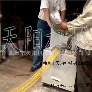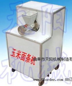 多味雜糧面條機 玉米長壽面機玉米等粗雜糧富含營養(yǎng)成份,蛋白質豐富,經(jīng)常食用可健身強體。隨著人們飲食觀念向“少精多粗,少葷多素”改變,對食品的要求從好吃轉向天然、營養(yǎng)、保健,吃粗糧、吃雜糧成為人們追求健康保健的新食尚。曲阜天陽經(jīng)過多年研制的玉米面條機,生產出的玉米金絲面符合現(xiàn)代人的飲食習慣。玉米金絲面食法:將面條涼水下鍋,水開后沸煮6-8分鐘撈出,用涼水過涼,可做打鹵面、蔬菜面、火鍋面及炒面。天陽玉米面條機生產純玉米面條筋道耐煮,口感清香.鮮美.滑爽細膩,常吃不厭。煮.涮.炒.涼面.湯面等均可。天陽玉米面條機生產的玉米面條色澤金黃,筋道耐煮、滑爽細膩、玉米香味、別具一格,獨占面食市場先機。玉米面條機投資分析(以玉米加工為例) 1、設備投資:玉米面條機約需3000-7000元左右。 2、生產成本:生產0.5公斤玉米面條的成本是在原料價格上加0.2元(電費、人工工資)。目前袋裝0.25公斤玉米面條在超市可賣到2.4元左右,在農貿市場可賣到2元左右。按生產0.5公斤玉米面條毛利1元計算,玉米面條機可日生產250--1000公斤,產品全部售出可贏利500-2000元。 三、經(jīng)營參考 1、來料加工 一般加工0.5公斤面條可收0.4元左右的加工費。還可用玉米、小麥等兌換五谷雜糧面條。如果再添玉米脫皮機、粉碎機搞一條龍加工服務,還可以把脫下來的糠皮喂豬。 2、家庭作坊白天生產面條、粉條和米線,利用早晚時間騎車按訂單送貨上門,主要服務對象是賓館、酒店、糧油店及超市。 3、市場銷售:可在城鄉(xiāng)農貿市場租一個攤位,現(xiàn)做現(xiàn)賣;可自家經(jīng)營一個特色粗糧小吃部,或在已有飯店的基礎上,增加經(jīng)營項目。單機型號與價格:TYG-A型玉米面條機時產50-60公斤,動力2.2KW(220V),價格2300元,TYG-C型時產100-120公斤,動力7.5KW,價格3600元。TYG-D型玉米面條機時產150-200公斤,動力7.5-11KW,價格7580元。成套玉米面條機(由脫皮機、磨粉機、拌面機、玉米面條機組成)型號與價格:TYG-AZ型(照明電型)日產800斤,總功率9KW,價格5780元,TYG-BZ型(通用型)日產2000斤,總功率24KW,價格10360元,TYG-CZ型(高產型)日產3200斤,總功率27.5KW,價格14600元。天陽機械公司張杰歡迎致電13181307932 18953731698 QQ531079582咨詢