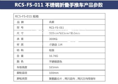 折疊平板車rcs-fs-011車身的材質(zhì)為優(yōu)質(zhì)的304不銹鋼或316不銹鋼,防腐性好,框架實板焊接,均勻牢固;手推車層板采用hl長絲板,高質(zhì)整潔,便于清洗,底部加強部分采用方管氬弧焊接做底框;手推車車輪采用聚氨酯輪片,具有減震和耐磨的優(yōu)點,這使得實驗室平板周轉(zhuǎn)車不僅操控方便靈活,而且承重力強,耐用;手推車腳輪也可選用靜音配置,采用