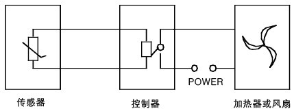 溫濕度控制器主要由傳感器、控制器、加熱器(或風(fēng)扇等)三部分組成,其工作原理如下圖所示: