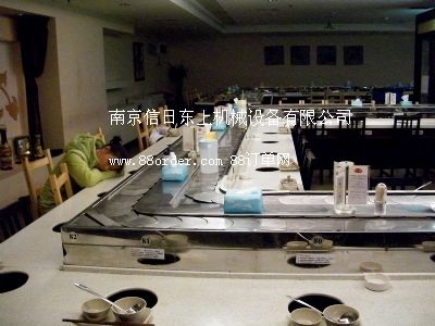 回轉(zhuǎn)火鍋線(xiàn) 自助火鍋線(xiàn) 旋轉(zhuǎn)火鍋線(xiàn)鏈板及鏈條均采用304磨沙面沖壓而成,板厚1.8mm,寬度140mm,鏈條節(jié)距100mm,鏈條下部分導(dǎo)軌面板采用304銹鋼鏡面,板厚度為1.2mm,內(nèi)部采用白色防摩尼龍墊條,旋轉(zhuǎn)吧臺(tái),壽司料理,旋轉(zhuǎn)火鍋,自助火鍋餐廳。下架采用30mm*30mm*1.5的碳鋼方管焊接而成,表面經(jīng)過(guò)防銹處理,所有連接部分均采用標(biāo)準(zhǔn)件連接,便于移裝。旋轉(zhuǎn)吧臺(tái),壽司輸送設(shè)備,回轉(zhuǎn)火鍋輸送帶,適應(yīng)了飲食界推陳出新,適應(yīng)了現(xiàn)代人對(duì)飲食新奇的追求;剞D(zhuǎn)火鍋線(xiàn) 自助火鍋線(xiàn) 旋轉(zhuǎn)火鍋線(xiàn)是你從事餐飲火鍋行業(yè),日本料理,韓國(guó)料理必備前衛(wèi)機(jī)械設(shè)備.