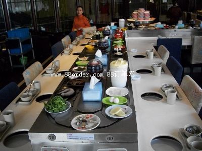 回轉(zhuǎn)火鍋設備 回轉(zhuǎn)火鍋傳送帶 回轉(zhuǎn)小火鍋設備主要用于日本料理、韓國料理、西餐廳及自助餐廳等,速度為0-5米/分鐘可調(diào)節(jié),鏈板為特制月牙形不銹鋼鏈板,其設備安裝后,業(yè)主可根據(jù)自身情況可進行裝修,客人用餐臺面可用大理石或?qū)嵞狙b修,設備還可根據(jù)業(yè)主餐廳布置的要求,來做不同形狀,其價格合理,外觀精美,無噪音等特點;疱伨,旋轉(zhuǎn)壽司線,旋轉(zhuǎn)火鍋線結構概要: