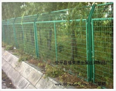 護欄網(wǎng)主要用于公園/動物園圍欄、校園/場區(qū)圍界、道路交通隔離、臨時隔離帶。 公路護欄網(wǎng)的另外一種應(yīng)用形式: 公路護欄網(wǎng) 如右圖。 主要規(guī)格如下:網(wǎng)子尺寸2.3mX3m 上面30cm的30°折彎 網(wǎng)格大。75mmX150mm 50mmX100mmm 80mmX160mm 邊框規(guī)格:20X30X1mm方管 表面處理:綠色浸塑。 公路護欄網(wǎng)的規(guī)格是多種多樣的,根據(jù)不同的地形,建設(shè)部設(shè)計不同的圖紙,在根據(jù)圖紙進行估價,生產(chǎn)。