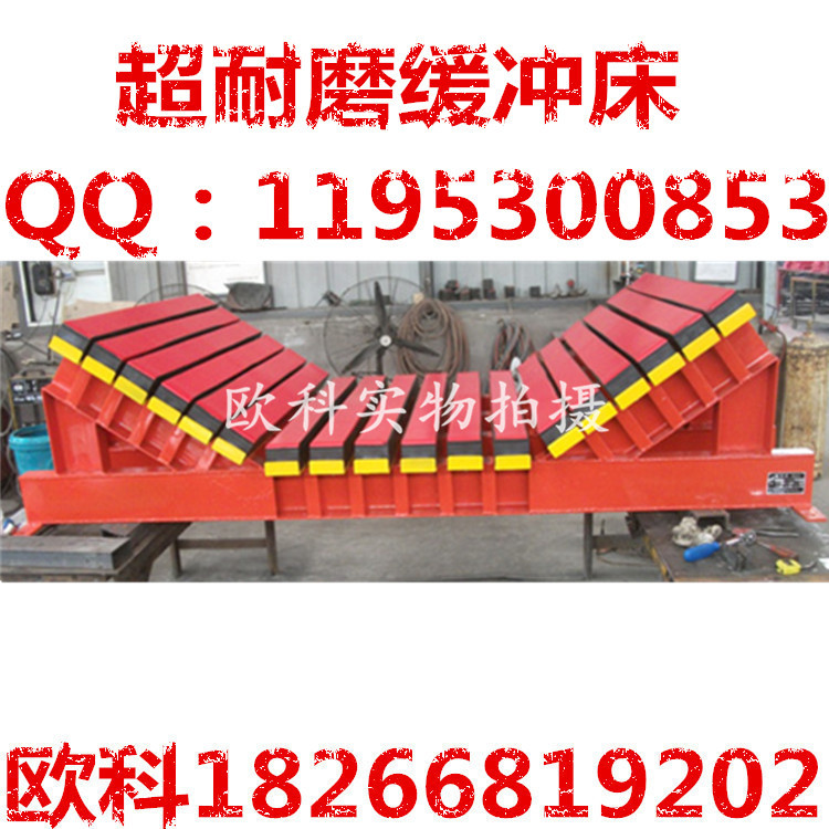 緩沖床主要用于替代緩沖托輥,緩沖床由緩沖條組成,而緩沖條主要應(yīng)用優(yōu)良的高彈性特種橡膠層充分有效吸收了物料下落時的沖擊力,大大降低了物料下落時對輸送帶的沖擊,真正的改善了落料點(diǎn)的受力狀況。并采用特殊的uhmw高分子聚乙烯表面,使輸送帶與緩沖條之間的摩擦系數(shù)降到最低,且耐磨性好。緩沖床的使用保證了輸送帶的面與面的接觸,受力均勻,有效防止了由于托輥斷裂、脫落造成的皮帶縱向撕裂,同時大大降低了皮帶被銳器或尖銳物料穿透后縱向撕裂的概率。