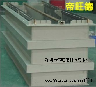可選用聚氯乙烯硬板材焊接而成。在槽上裝三根電極棒,中間為可移動(dòng)的陽(yáng)極棒,接電源陽(yáng)極(或正極),兩側(cè)為陰極棒,連接電源陰極(負(fù)極)。