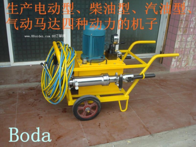 各種巖礦石和混凝土都具有很高的抗壓強度,但其抗拉強度卻較小,其抗壓與抗拉強度之比大約為100:3~10,液壓分裂機就是根據(jù)巖石與混凝土呈脆性的特點,利用楔塊原理來設(shè)計。它主要由超高壓液壓站和分裂機兩大部分組成,液壓站輸出的高壓油推動分裂機的中間楔塊向前運動的時候,將側(cè)楔塊向兩邊撐開,可產(chǎn)生高達350-1080噸的分裂力,將待分裂的物體在很短時間內(nèi)按預定方向裂開,主要應用場合有: 1.施工場合中巖石的破碎拆除,如隧道、溝渠、路基、房基、豎井等; 2.素混凝土和鋼筋混凝土構(gòu)件局部和全部拆除,如水泥路面、機車基礎(chǔ)、橋梁及房屋構(gòu)件等; 3.花崗巖、大理石荒料開采過程中的分裂與分離作業(yè);金屬礦、非金屬礦的開采等; 4.大塊巖石、礦石、混凝土的二次分裂; 5.搶險救災及其他特殊施工場合的應用。 與傳統(tǒng)作業(yè)方式相比,液壓分裂機具有結(jié)構(gòu)簡單、操作方便、體積小、重量輕、分裂力大的特點,工作時無振動、無沖擊、無噪音,分裂快,作業(yè)效率高、成本低、節(jié)能等一系列優(yōu)點,是替代爆破和手工解體的理想設(shè)備。