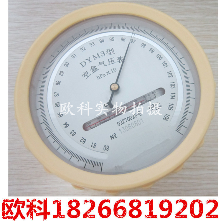 dym3空盒氣壓表是以變形元件作感應(yīng)的一種大氣壓測(cè)量?jī)x器?蘸袣鈮罕硪詳y帶方便、測(cè)量準(zhǔn)確,測(cè)壓范圍廣、使用維護(hù)簡(jiǎn)便、無(wú)供污染等優(yōu)點(diǎn),dym3空盒氣壓表廣泛地應(yīng)用于氣象、軍事、航空、航海、農(nóng)業(yè)、測(cè)量、地質(zhì)、工礦企業(yè)和科研等領(lǐng)域,成為測(cè)量大氣壓力的常規(guī)儀器。dym-3型空盒氣壓表(平原型)是由隨大氣壓力變化而產(chǎn)生軸向位移,通過(guò)曲柄連桿機(jī)構(gòu)和齒輪傳動(dòng)機(jī)構(gòu)帶動(dòng)裝于指針軸上所指針在度盤上作圓周運(yùn)動(dòng).指針在度盤上所指示的值即為當(dāng)時(shí)大氣壓力值