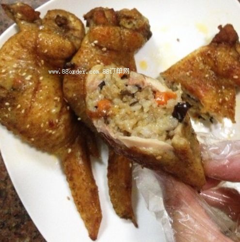 雞翅包飯興起于臺(tái)灣美食夜市,是一款地道的特色臺(tái)灣休閑小吃,雞翅去骨,在填滿提前炒制好的飯粒,涂抹醬料進(jìn)行碳烤?粗矍耙恢恢豢竞玫姆史实碾u翅包飯按捺不足,一口咬下去,酥脆的雞肉皮包裹著炒飯,脆里帶嫩,那味道真是回味無窮!