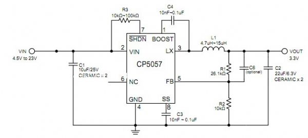 開關電源(switching power supply)具有高電源轉換效率、熱損低的特性,可解決缐性穩(wěn)壓器面臨的效率不佳的問題。但其電路較復雜,占pcb板面積較多。cp5057為內含mosfet的開關電源,可簡化電路及減少pcb板的面積。