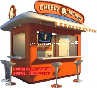 售貨亭內(nèi)外墻板為鋁塑板,表面可做浮碳處理,顏色可自由選擇