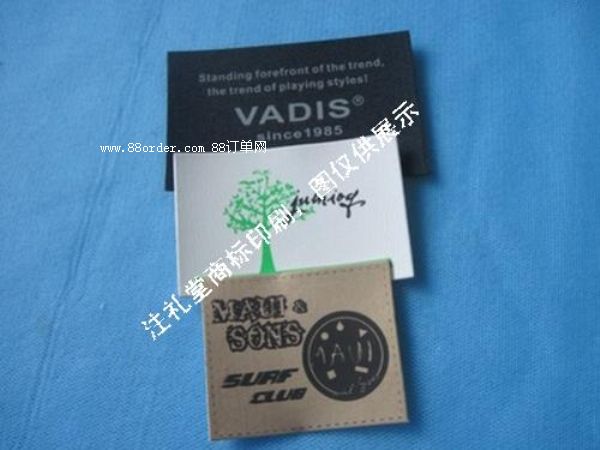 皮牌: 1、皮牌(皮標)的制作一般是通過高頻電壓使logo凹進去或凸出來,也有采用壓與印結(jié)合的方式,這樣可使皮牌的顏色不單一,更漂亮。 2、皮牌的材料一般采用變色pu皮或真皮。pu皮牌便宜,真皮貴很多這是肯定的,從外表看來,變色pu皮與真皮做的皮牌差不多,但真皮牌的手感與質(zhì)量確實是好很多的。 3、本廠(注禮堂商標印刷有限公司)為直接生產(chǎn)廠家,歡迎訂做。 qq:1832669067 貿(mào)易通:gxrlabel email:xjm@ |