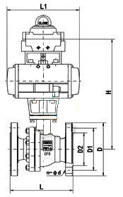 q641h氣動硬密封球閥主要尺寸圖和尺寸表: