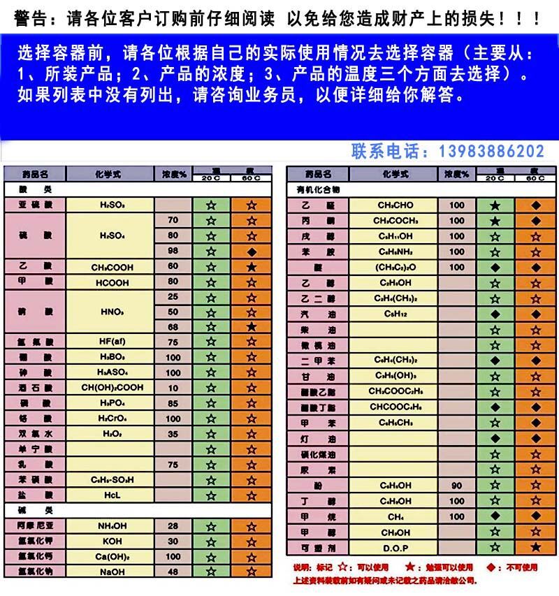 3、盛裝化學(xué)品請(qǐng)訂購(gòu)特級(jí)品,并配專(zhuān)用接口。