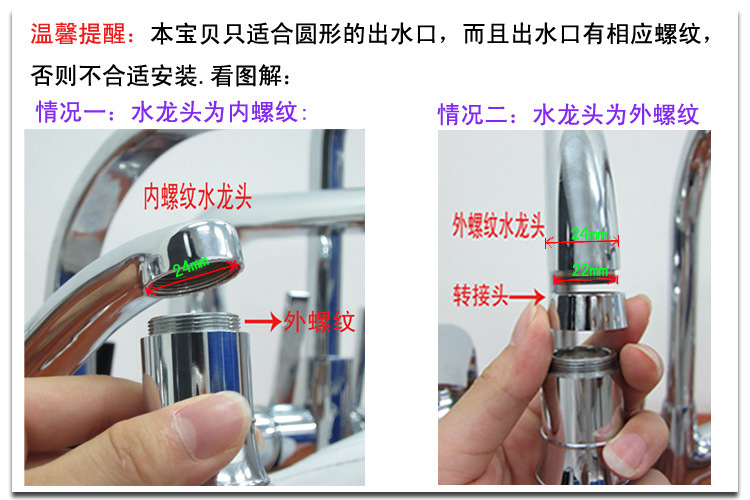 1.本產(chǎn)品內(nèi)置小型電能發(fā)電裝置,無需電池帶動(dòng),只要有水流便會發(fā)光,關(guān)掉水源后,燈就立即熄滅。