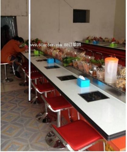 使用回轉(zhuǎn)火鍋設(shè)備不需設(shè)大廚房,透明式操作,整個(gè)配制、加工過(guò)程,都由顧客自己在餐桌上完成的。