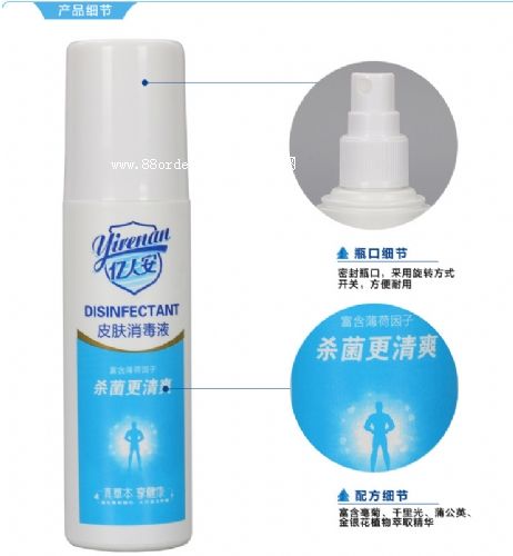 用于手及皮膚部位的殺菌消毒。將本品原液直接噴霧于皮膚表面至濕潤(rùn),揉搓1-2min至干爽,即可有效殺菌致病菌。 |