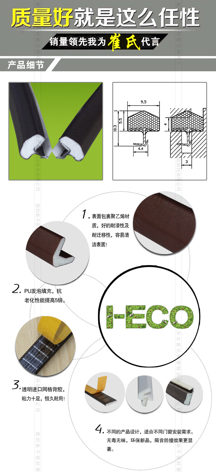 3、20年超長使用壽命:模擬開關門(窗)50萬次,膠條形狀及回彈性無明顯變化。