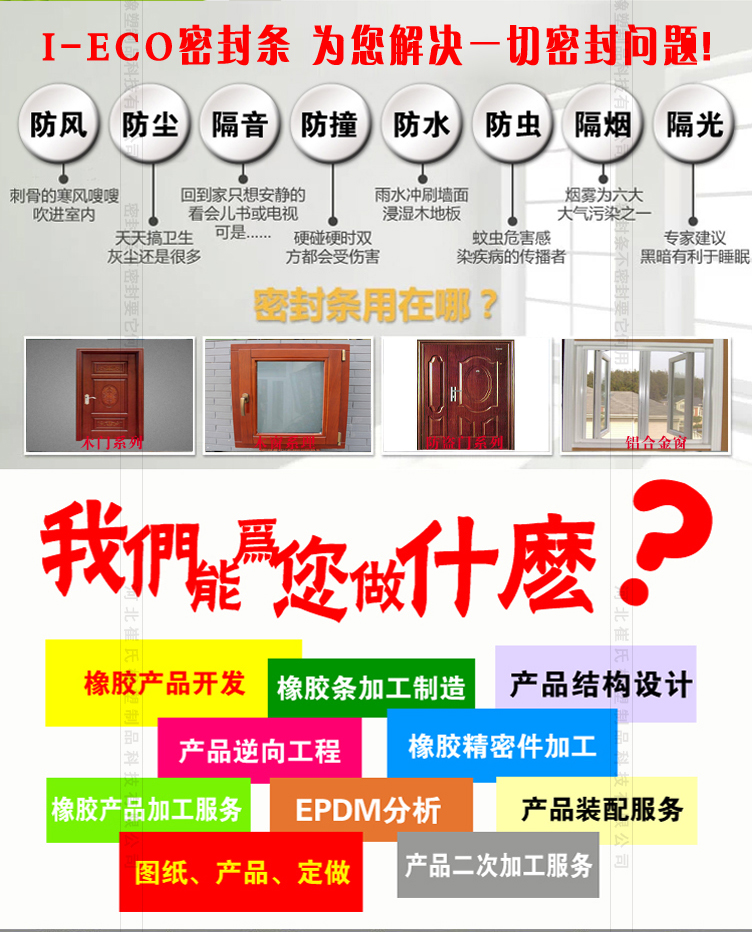4、耐壓縮、變形率小、回彈性好,比普通門窗膠條提升至少35%的密封性能。