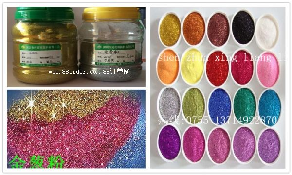 1 、圣誕工藝 :膠水(水性、油性) --->撒粉上去 ---> 自然風(fēng)干(烘干) 2 、蠟燭工藝 :蠟與粉混合 ( 透明 ) ---> 冷卻成形 3 、陶瓷工藝 :刷清漆(金油、膠水) ---> 撒金蔥粉 ---> 烘干 ---> 噴清漆 ---> 烘干成形。 4 、鐵制品工藝 :清漆與粉混合---> 噴涂 ---> 自然風(fēng)干( 烘烤 ) 5、 紙張工藝:膠水(水性)--->機(jī)印上去--->自然成型