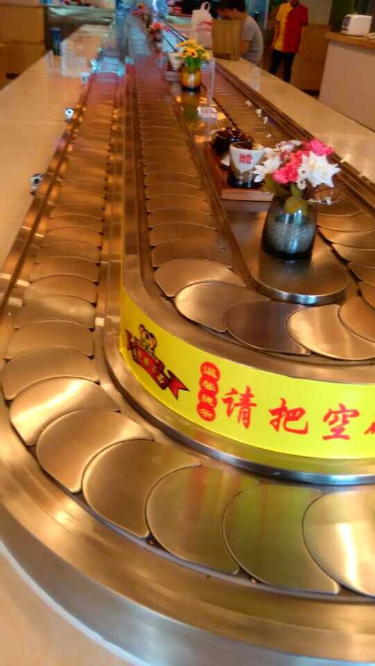 食客在各自的座位上可隨意選擇擺放在輸送帶上的食品,無需服務員送上,本機以臺架代替餐桌,可節(jié)省大量餐桌及臺布。3、餐點再旋轉中運用明亮的燈光及輸送帶的移動讓餐點變的更可口,