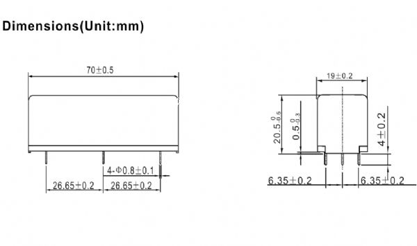 外部尺寸:70*19 *20mm(l*w*h)